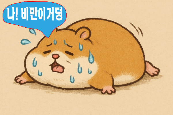 햄스터가 지나치게 많은 사료를 먹거나, 운동량에 비해 고에너지, 고지방의 사료를 먹었을 경우 비만 위험이 증가하게 됩니다. 이것은 집사의 책임이 크다고 볼 수 있습니다. 햄스터가 귀엽다고 사료를 많이 주면 통통하게 살찌는 문제가 발생할 수 있습니다.
